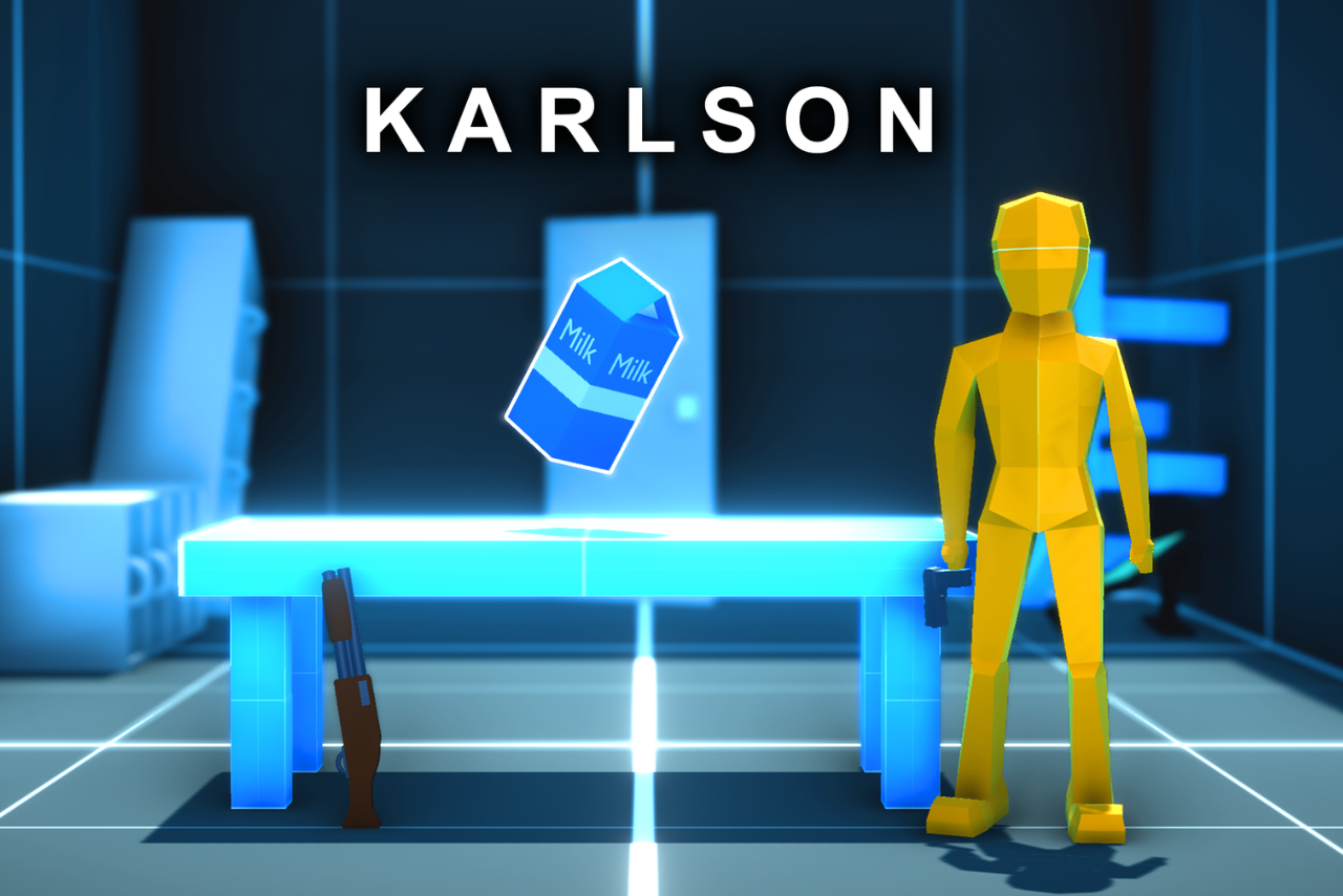 Play Karlson, an action FPS game, and launch into a momentum-fueled arena of sharp gunplay and physics-driven movement. Abstract futuristic facilities frame every run, pushing players to chase a carton of milk with speed, creativity, and constant awareness. Sliding, wall-running, grappling, and explosive jumps shape the core loop without slowing the flow. Precision and flow outweigh raw firepower during every encounter. Clean movement paths reward confidence, control, and smart reactions. Join this fascinating arena and start chasing milk!