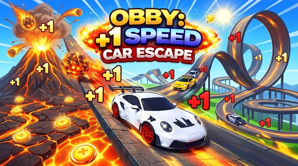Momentum builds fast in Obby: +1 Speed Car Escape, a hybrid of parkour chaos and incremental growth. Every second adds speed, every action multiplies it, and every run tests how well you control it. From slow starts to insane velocity, the journey never really slows down. Stack your speed to master the track and break through every limit now!